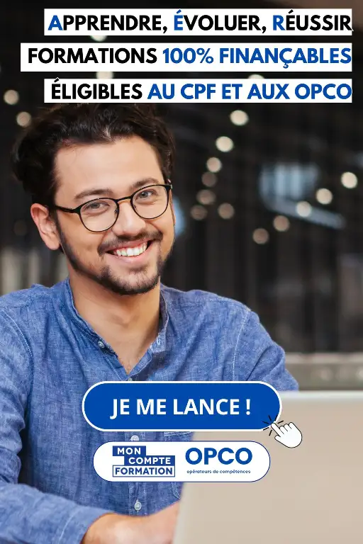 Profitez d’un financement intégral grâce au CPF, aux OPCO, à l’AIF, aux FAF et aux dispositifs publics. Choisissez simplement la formule qui vous convient.